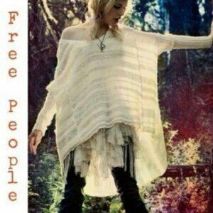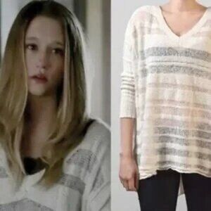 Free People ‘Spending Time’ ivory high-low sweater as seen on Violet Harmon in American Horror TV series. Size XS. Fabric contents listed in photo. Hand wash. Also seen on Ashlee Tisdale and Hilary Duff. Ovesized, semi-sheer to wear over a tank or top.