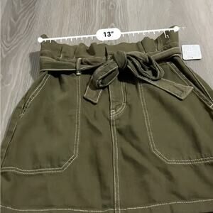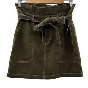 Free People Splendor In The Grass PaperBag Waist Mini Skirt in Army Green Size 6
