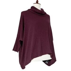 Free People Split Back Cowl Neck Dolman 3/4 Sleeve Oversized Ribbed Knit Top S