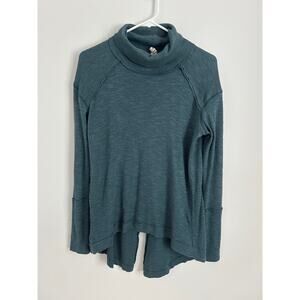 Features a relaxed turtleneck, slub texture, elongated cuffs, high-low hem, raglan sleeve with drop shoulder seam, raw edges.
