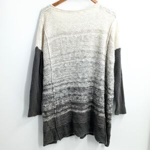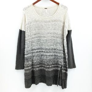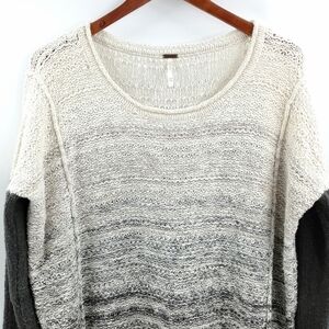 Free People Split Side Striped Ombre Gray Oversized Sweater. Scoop neck, drop sleeves, Ombre white to grey, 100% Cotton Textured knit, oversized long fit, side vents, straight cut hem. **Small faint mark on the upper back shoulder, see photos for details. Otherwise, Great pre-owned condition.