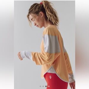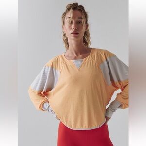 The Perfect Lightweight Layer To Add To Any Fitness Focused Fit, This Long Sleeve Is Featured In A Slouchy Relaxed Silhouette With Contrast Ribbed Piecing, With A Rounded Bottom Hem, Colorblock Long Sleeve, FP Movement, Relaxed Fit, Oversized Pullover, Casual, Comfy Loungewear, Lightweight, Layering Top, Sporty, Athletic