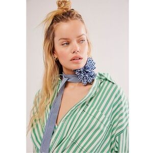 Free People Spring Summer Picnic Flower Necklace in Blue Gingham Country Dainty