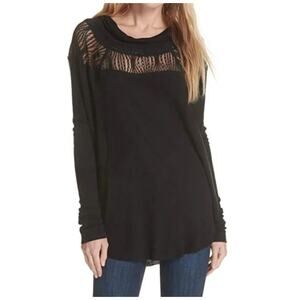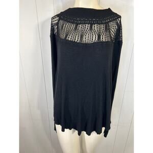 Free People Spring Valley Lace-Trim Top in Black. Size Small. In Excellent Condition.