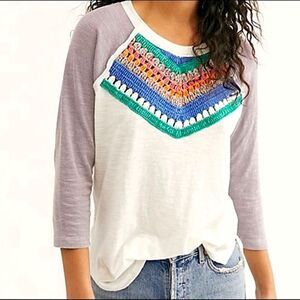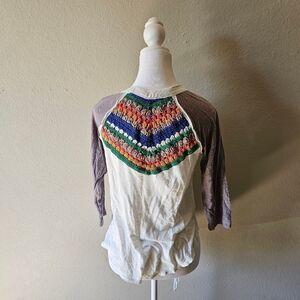 Free People Spring Bound 3/4 Sleeve Crochet Top XS