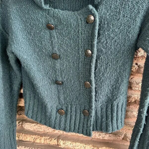 Free People Spruce Green Double Breasted Cropped Cardigan Sweater Size Small