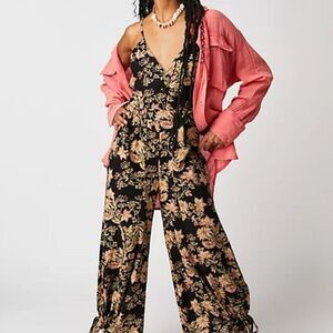Free People Stand Out Floral Printed Jumper in Black Combo Size L