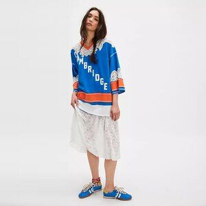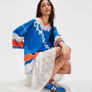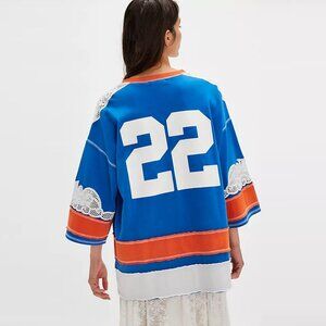 Two contrasting vibes collide with this oversized tee from We The Free, featured in jersey-inspired design with lace paneling for the perfect unexpected femme touch.