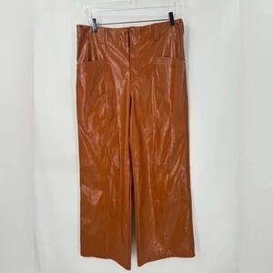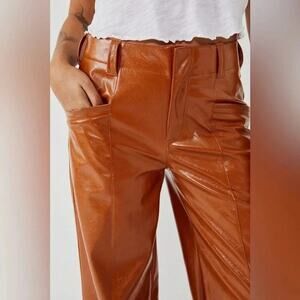 Features: Zip fly and hook closure; four-pocket style; inverted seaming for added shape; buttery vegan leather fabrication