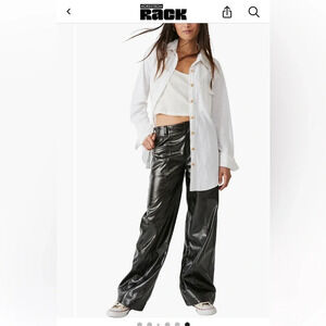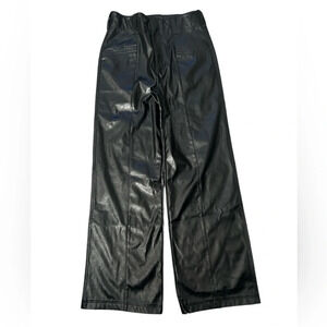 Free People Star Crossed Lovers Straight Vegan Leather Black Baggy Pants Size 2 NWOT