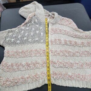Free People Star Spangled American Flag Cardigan Sweater Oversized Boho Medium see photos for measurements used condition some small stains near bottom but not very noticeable