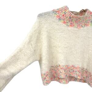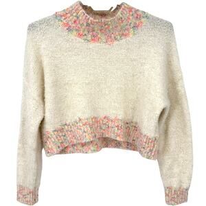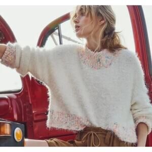 Free People Stardust Pullover Sweater Gardenia Combo Crop Cozy Size Small NEW