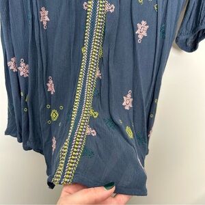 Blue sundress with pink and green embroidery. Lightweight and flowy sundress. Size medium with tie waist. Great condition!