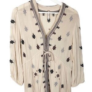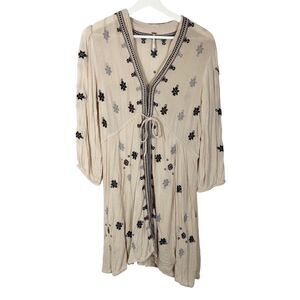 Free People Stargazer Mini Dress Beige Medium Embroidered Gauzy OB507864