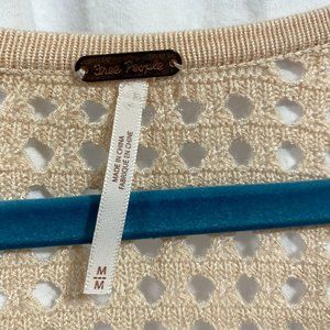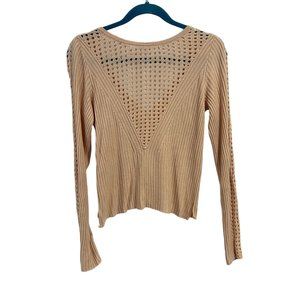 Stylish Free People Starlight Ribbed Tunic Sweater with deep V-neck and gridded cutouts. Long sleeves provide warmth. Made from 100% Viscose. Good condition. Size M.