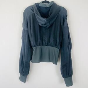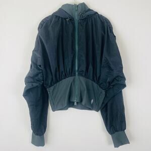 Free People Start Me Up Cropped Green Athletic Hoodie Jacket Size Large