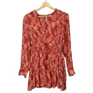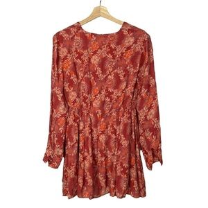 Free People Stealing Fire Red Combo Floral Mini Dress XS