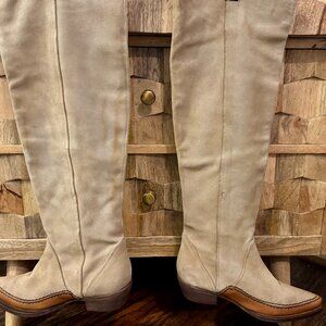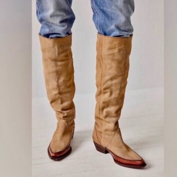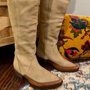 Free People Sterling Western Tall Boots | Tan Suede | Size 37 / US 7