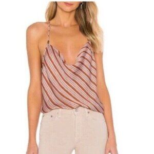 Free People | Stevie Asymmetrical Stripe Satin Cowl Neck Tank Top Boho Retro XS