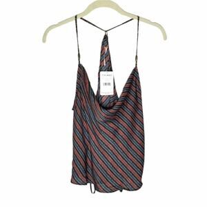 Features: Lightly weathered stripes bring visual texture and contrast to a breezy tank with a relaxed cowl neck and wide armholes. Satin Polyester, Racerback, Spaghetti Straps. Loose, Relaxed fit.