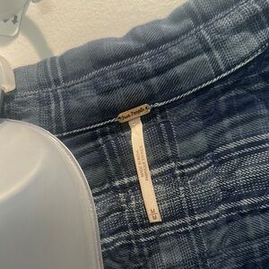 Free People Stevie's Embellished Plaid Tunic Shirt M Blue Flannel Western
