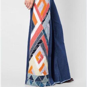 Free People Stick By Your Side Patched Wide-Leg Jeans Flare Pants Sz 28