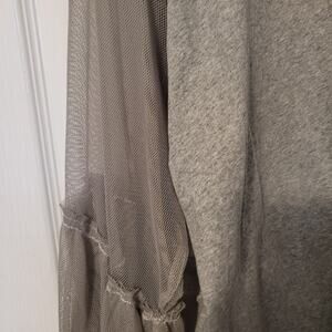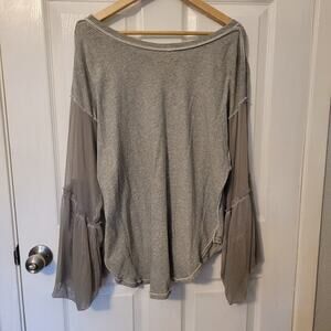 Beautiful Free People top with mesh bell sleeves. Oversized fit. Heather gray. hi/lo rounded hem. size M