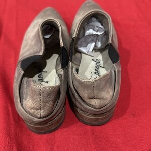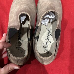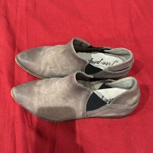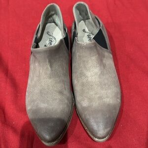 Stylish stone ankle booties by Free People. Modern design with elastic side panels. Perfect for everyday wear.