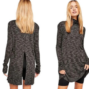Free People Stone Cold Black Heather Split Back Turtleneck Tunic Size XS
