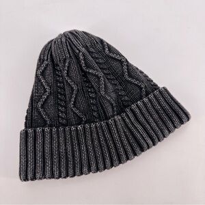 Free People Stormi Washed Black Cable Beanie Cotton Hat