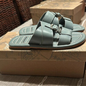Stylish blue/grey sandals with buckle detail. Comfortable and trendy quality sandals from Free People. NIB though note last pictures line through name apparently to prevent store returns.