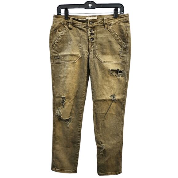 Free People Straight Crop Utility Jeans in Distressed Olive - Women's Size 2