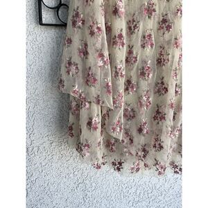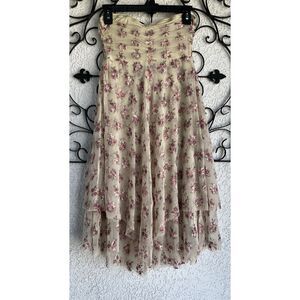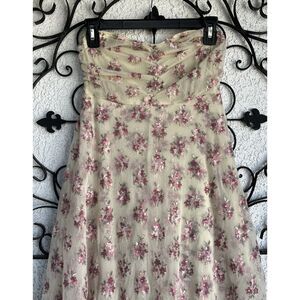 Free People Strapless Floral Tiered Hem Dress - Size M- Tan/pink