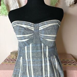 Elegant strapless midi dress with vertical stripes. Ideal for casual wear.