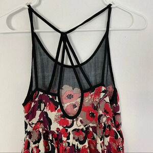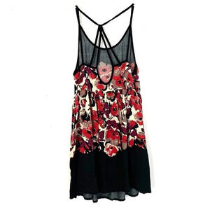 Free People Strappy Floral Babydoll Dress Rayon Racerback Black Red Size XS Boho