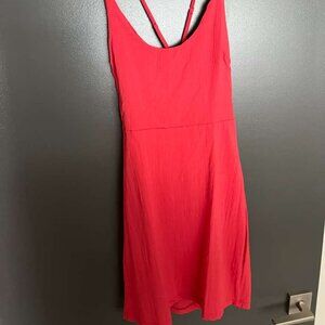 Cross back straps - bright salmon pink mini, strechy crepe dress from Free People. Tags cut off but never actually worn out (tall girl and mini dress was just too mini)