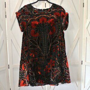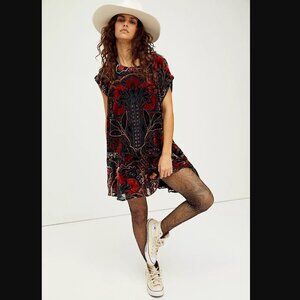 Soak up the sun no matter the season in this sweet, smock-style mini dress featured in a gorgeous printed velvet fabrication and slouchy silhouette for timeless style.