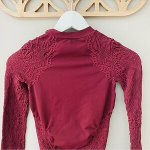 Free People Stretch Long Sleeve Top Maroon Sz XS/S