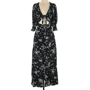 Free People String of Hearts Black Floral Midi Cutout Dress
