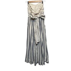A castaway-chic look perfect for days bouncing between the beach and boardwalk. Light and airy cotton fabric. Strapless bandeau neckline. Tie detail at waist. Smocked back. Front hand pockets. Straight hemline. Partially Lined. Slip-on design.