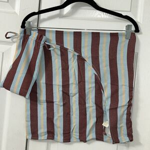 Free People Stripe Brown & Blue Linen Blend Sarong.Includes storage bag. New Without Tag