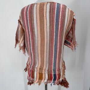 Free People Striped Boho Tassel Tie Scoop Neck Blouse Size XS