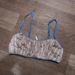 Stylish bralette with brown stripes and blue accents. Adjustable straps for a perfect fit.