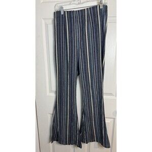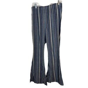 Free People Striped Flare Pants Large Blue Cotton Blend Pull On Boho Retro 70s