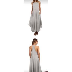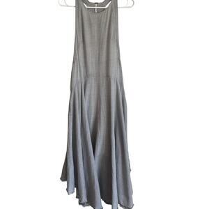Free People Striped Maxi Dress XS Gray White Cotton Boho Raw Hem EUC