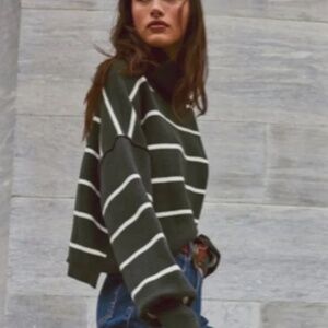 Free People Striped Oversized Cropped Paulie Turtleneck Sweater Size XS