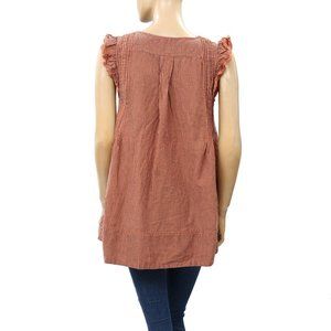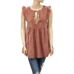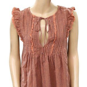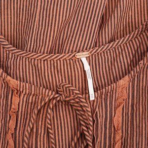 Free People Striped Printed Mini Dress Lace Tie Ruffle Boho Cotton XS New