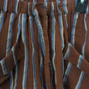 Free People Striped Shorts Brown Blue High Waisted Drawstring Pockets
