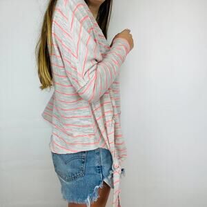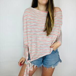 We The Free Medium Gray/Prink Stripped Side Tie Long Sleeve Off The Shoulder Top