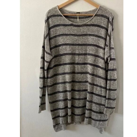 Free People Striped Slouchy Gray Striped Sweater Tunic Small